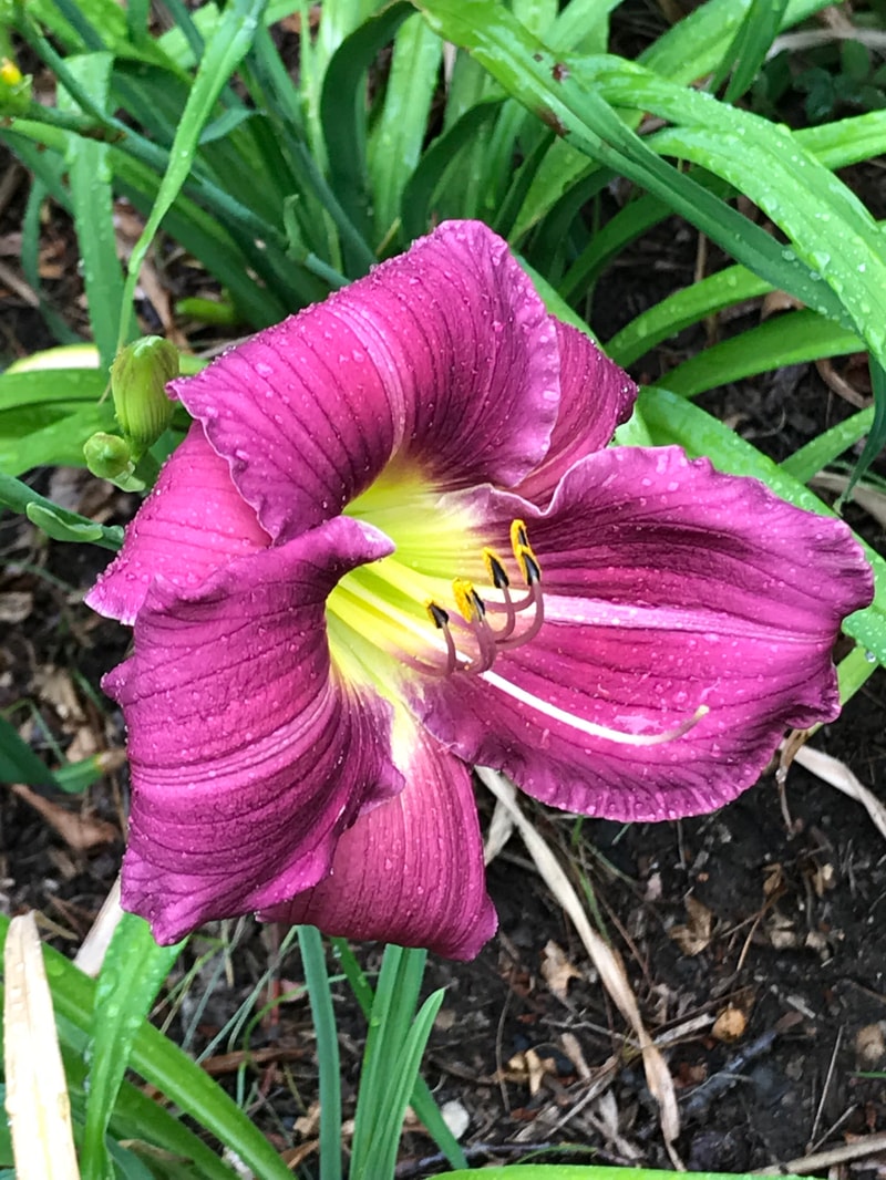 purple self with lime green throat